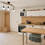 Помешкання пропонує такі можливості для самостійного приготування їжі, як кухня, обладнана мікрохвильовою піччю, електрочайником і духовкою. Для зручності гостей в апартаментах є кавоварка. Ресторан L'aladin балує гостей стравами середземноморської кухні і знаходиться всього лише за 6 хвилин ходьби від цього помешкання. Ти будеш досить близько до найближчої автобусної зупинки " Blandeau".